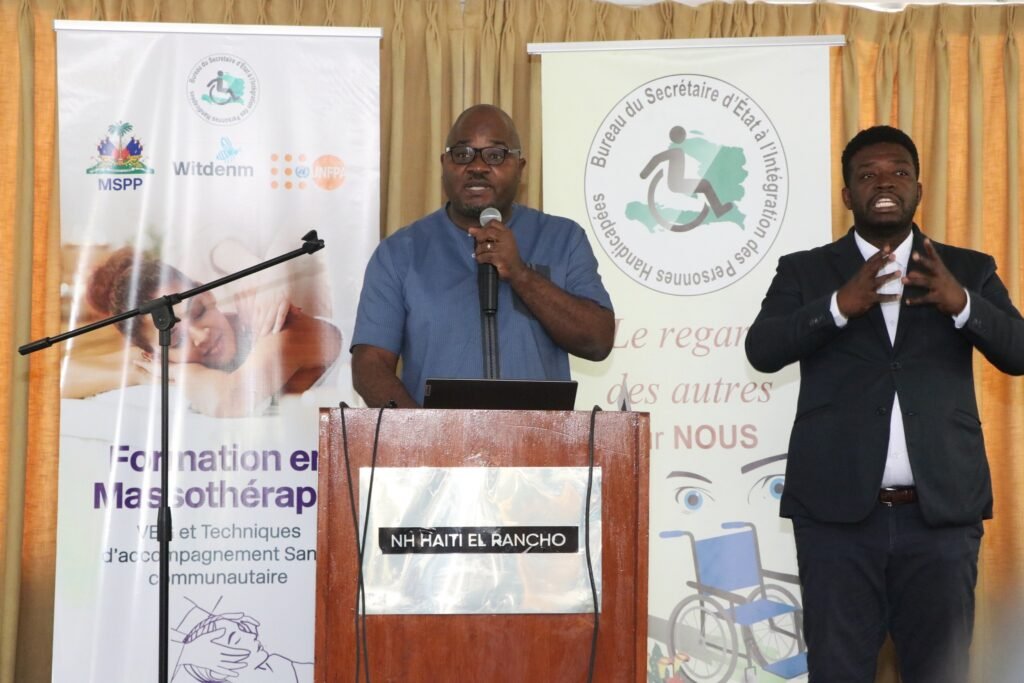 Port-au-Prince, 18 juillet 2025 — Le Bureau du Secrétaire d’État à l’intégration des personnes handicapées (BSEIPH en partenariat avec le Fonds des Nations-unies pour la Population (UNFPA) et le ministère de la Sante Publique et de la Population (MSPP) a lancé, ce vendredi, une formation en massothérapie et santé communautaire destinée à une cinquantaine de personnes à mobilité réduite. Placée sous le thème « Une formation, un emploi », cette initiative vise à promouvoir l’autonomie, l’insertion professionnelle et la cohésion sociale des personnes handicapées en Haïti.