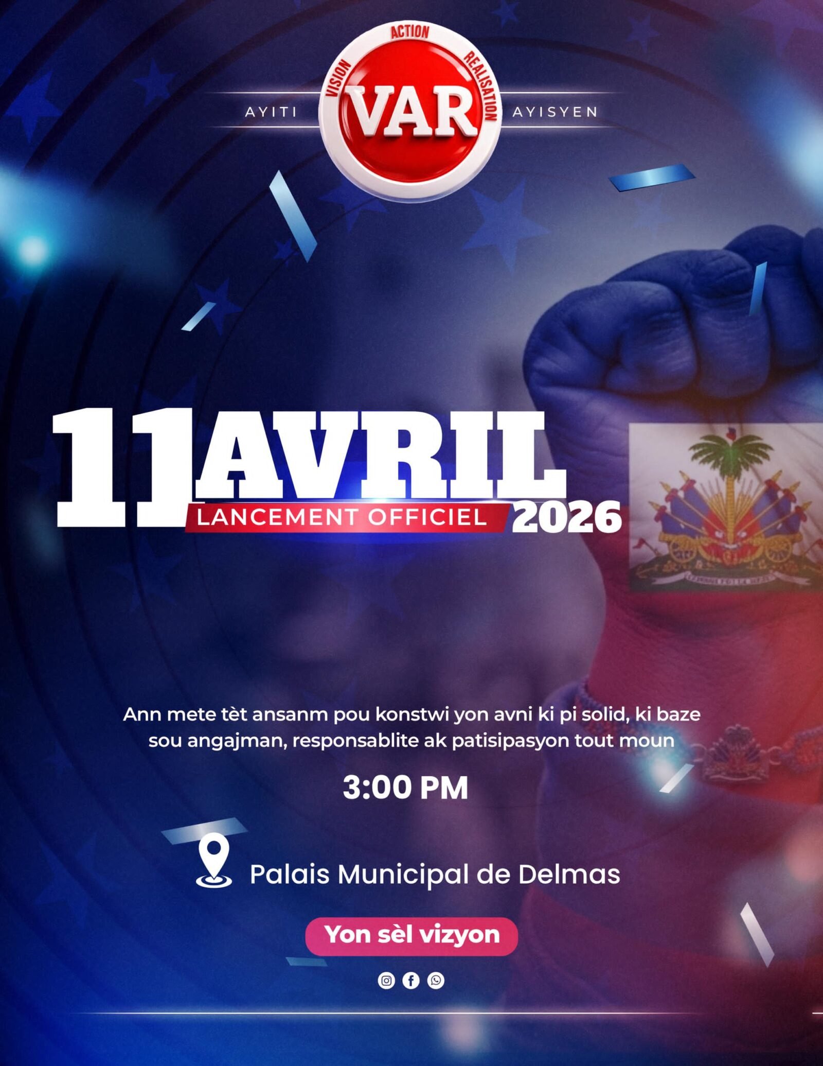 À quelques mois des prochaines échéances électorales, un nouvel acteur politique s’apprête à faire irruption sur la scène nationale. Le parti Vision-Action-Réalisation (VAR) a annoncé son lancement officiel pour le 11 avril 2026, dans un contexte marqué par de fortes attentes populaires et une recomposition progressive du paysage politique haïtien.