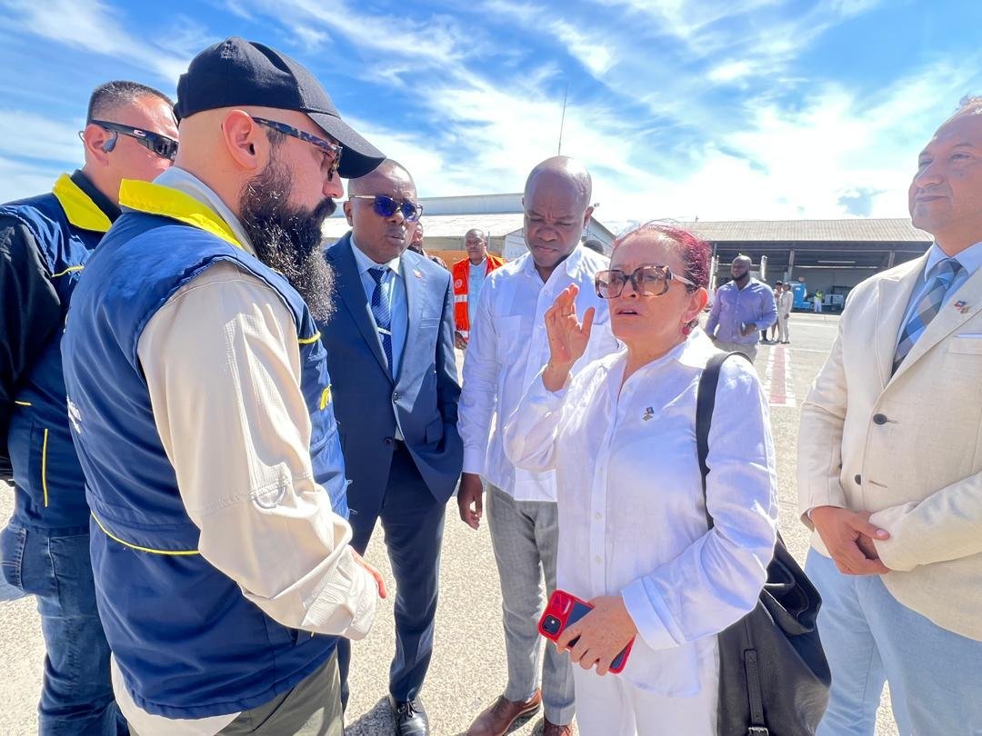 La remise de cette première cargaison a été effectuée par l’Ambassadrice de la République de la Colombie en Haïti, Vilma Velasquez, au Ministre Délégué à la Solidarité et aux Affaires Humanitaires, Herwil Gaspard, en présence du Directeur de la Protection Civile, Emmanuel Pierre.