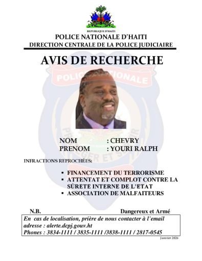 La Direction centrale de la police judiciaire (DCPJ) a émis, le jeudi 5 février 2026, plusieurs avis de recherche visant des personnalités politiques et des individus réputés proches du pouvoir, dans un contexte marqué par une dégradation continue de la situation sécuritaire en Haïti.